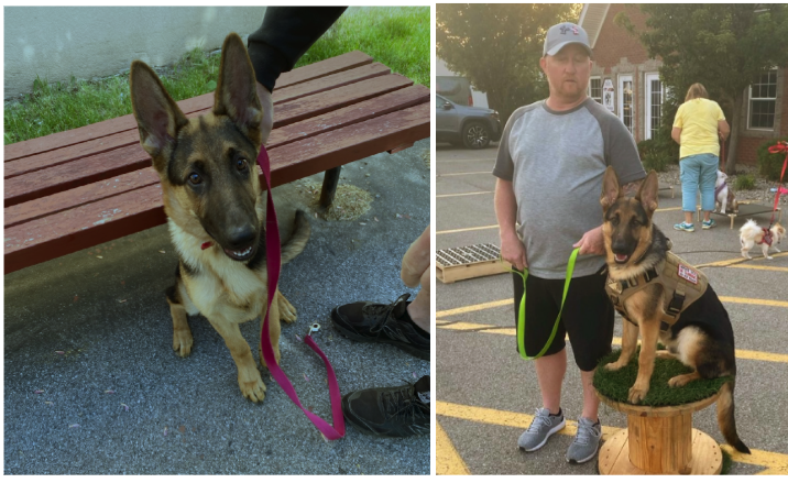 Iraq War Veteran Chad Leaver and his new service dog “Cote”