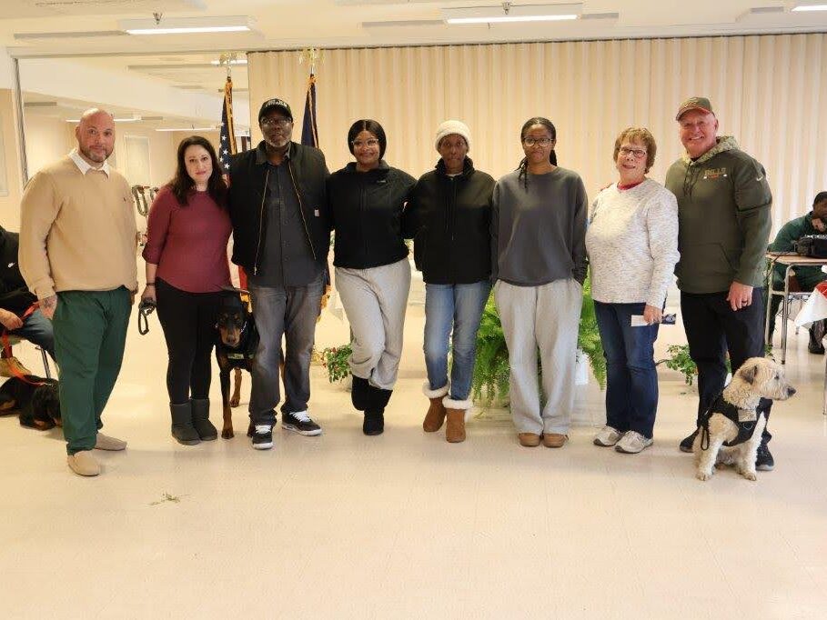 On November 19, 2025, we were present at the Wyoming County Correctional facility where a service dog was given to a local veteran. This dog was funded by our foundation. WNY Heroes started a service dog training program at this facility in 2024. The dog, named Jon, after our son/brother was given to US Air Force veteran, Jerry Williams. The dog was trained by incarcerated individuals and graduated on this day. Jon is a Doberman pinscher and is currently doing an excellent job for his veteran.
